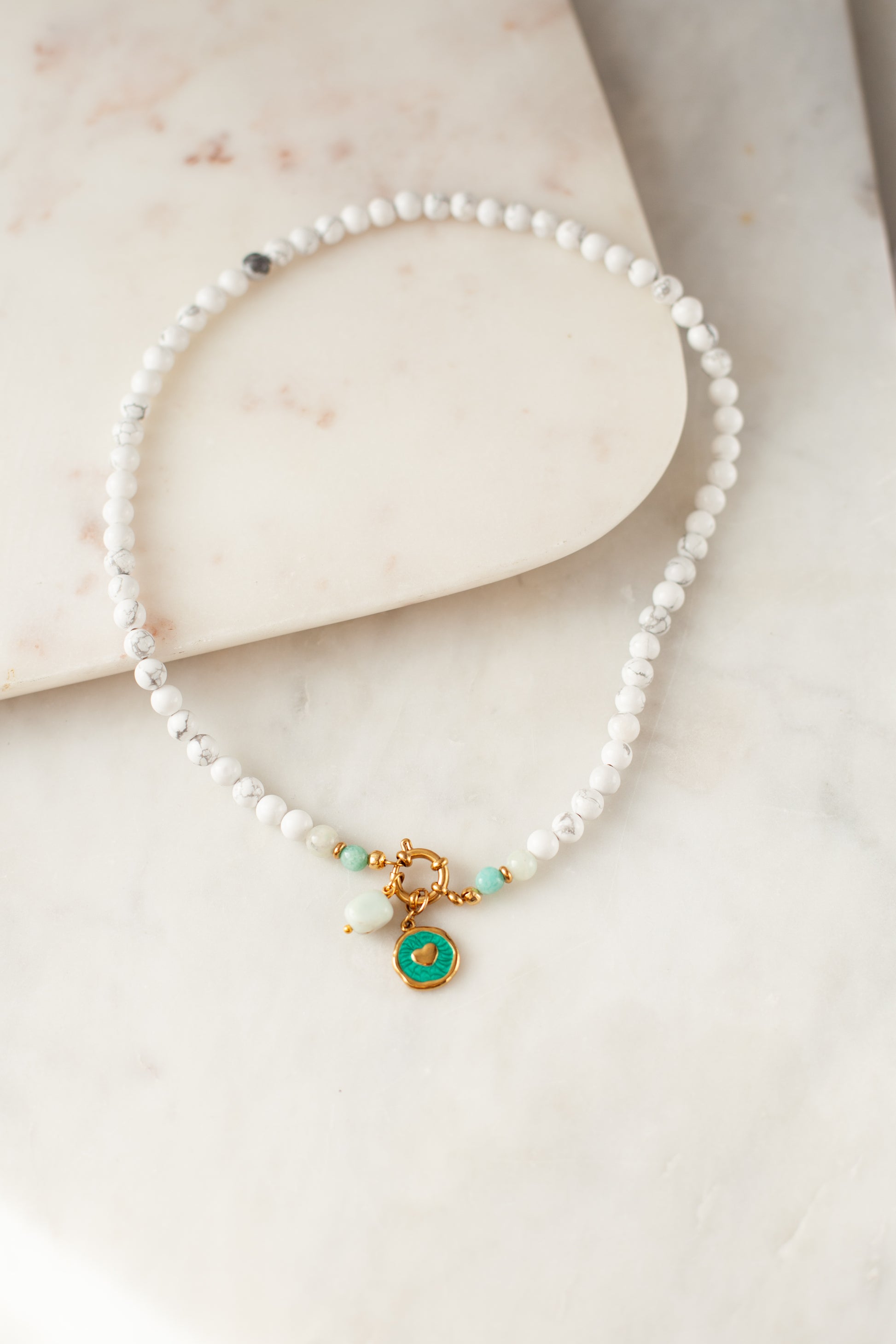Chaque perle d'howlite de 6 mm porte en elle le calme — un rappel discret que la paix crée l'espace nécessaire à l'épanouissement de la joie.